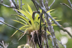small one in bromeliad being mobbed by Black-chested Jays.